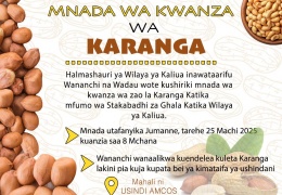 Halmashauri ya Wilaya ya Kaliua inawataarifu Wananchi na Wadau wote kushiriki Mnada wa kwanza wa zao la Karanga kupitia mfumo wa Stakabadhi za Ghala katika Wilaya ya Kaliua
